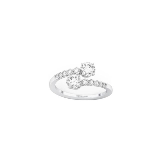 Bague 1897 en or blanc, diamant certifié et entourage diamants