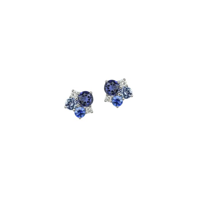 Pointilliste Boucles d'oreilles Isabelle Langlois Pointillisme en or blanc, iolites, tanzanites, saphirs et diamants