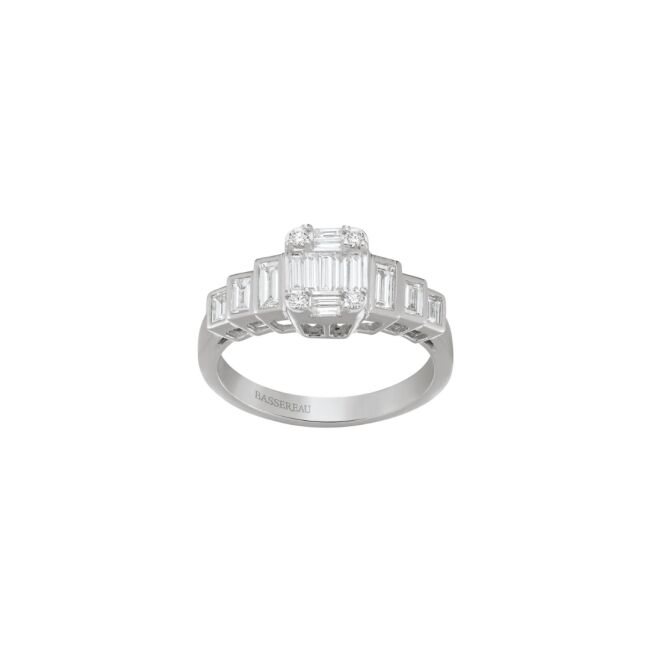 Art Déco Bague Art Déco en or blanc, saphirs bleus et diamants