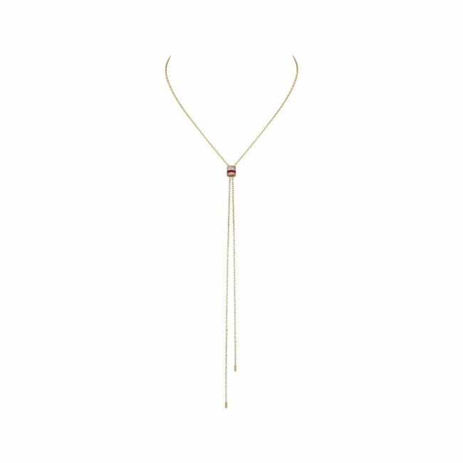 Quatre Collier cravate Boucheron Quatre Red Edition, Petit modèle en or blanc, or jaune, or rose, céramique rose et diamants