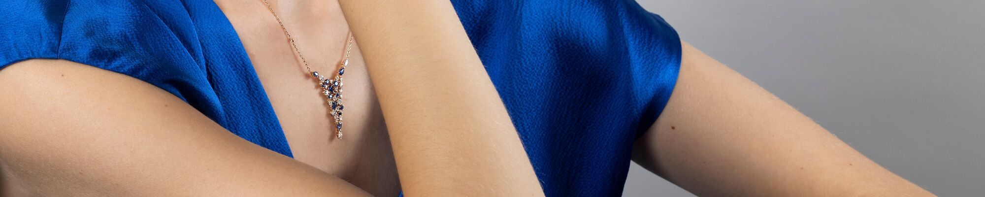 Collier 1897 en or rose, saphir rose et entourage diamants