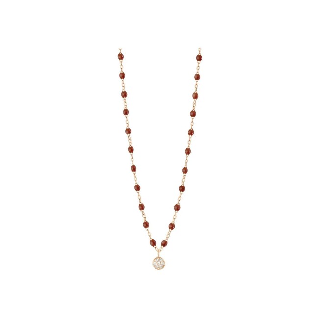 Collier Gigi Clozeau Puce en or rose, résine moka et diamants, taille 42cm