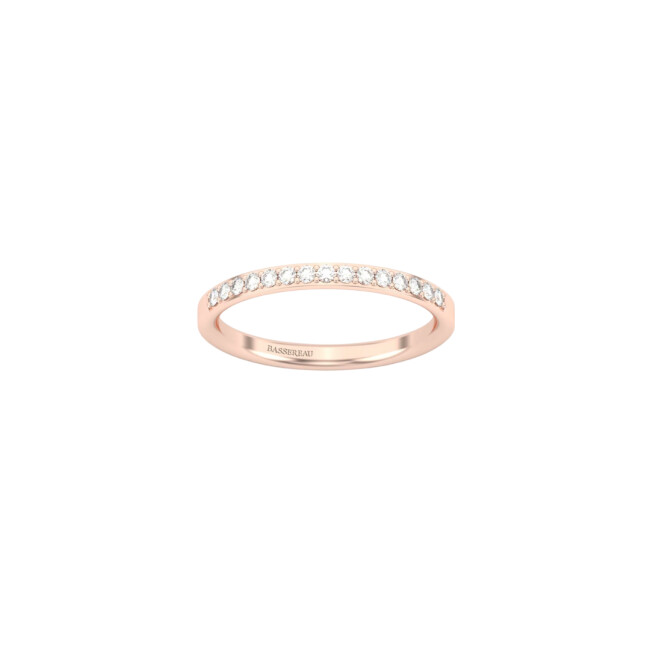 Alliance en or rose avec pavé de diamants : la délicatesse de l’or rose combinée à l’éclat des diamants crée un bijou exceptionnel, véritable reflet d’une histoire d’amour unique.
