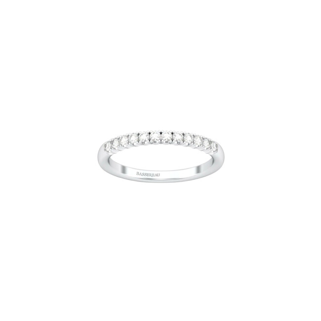 Alliance demi-tour diamants taille princesse sertis rail or blanc