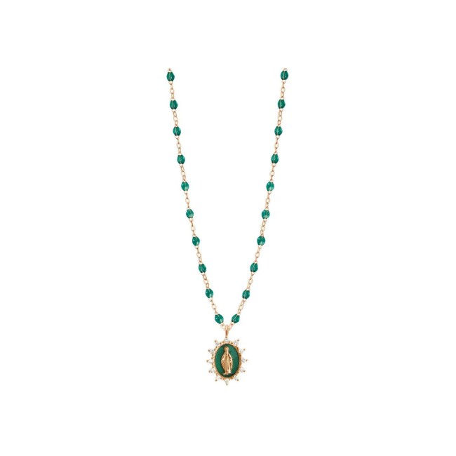 Collier Gigi Clozeau Madone en or rose, résine vert émeraude et diamants, taille 42cm