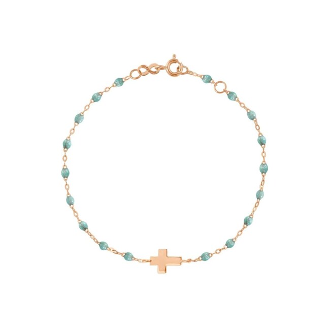 Bracelet Gigi Clozeau Croix en or rose et résine glacier, taille 17cm