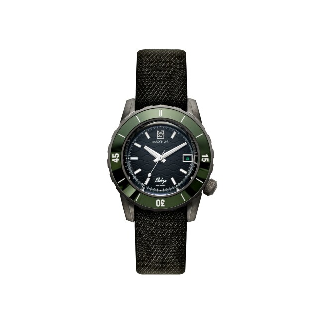 Belza Montre March LA.B Belza automatique Titane limitée à 99 pièces - Bracelet Jacquard tissé vert kaki Julien Faur
