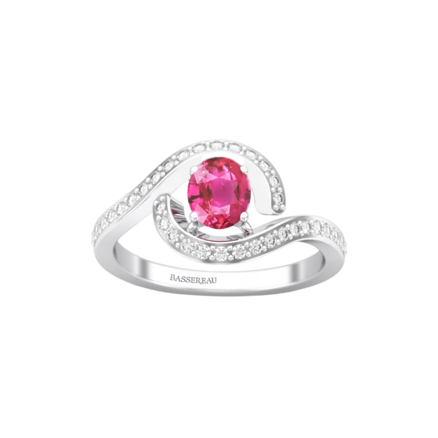 Bague 1897 en or blanc, saphir rose et diamants
