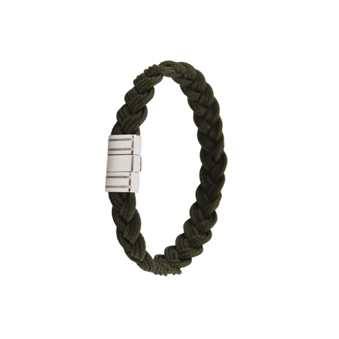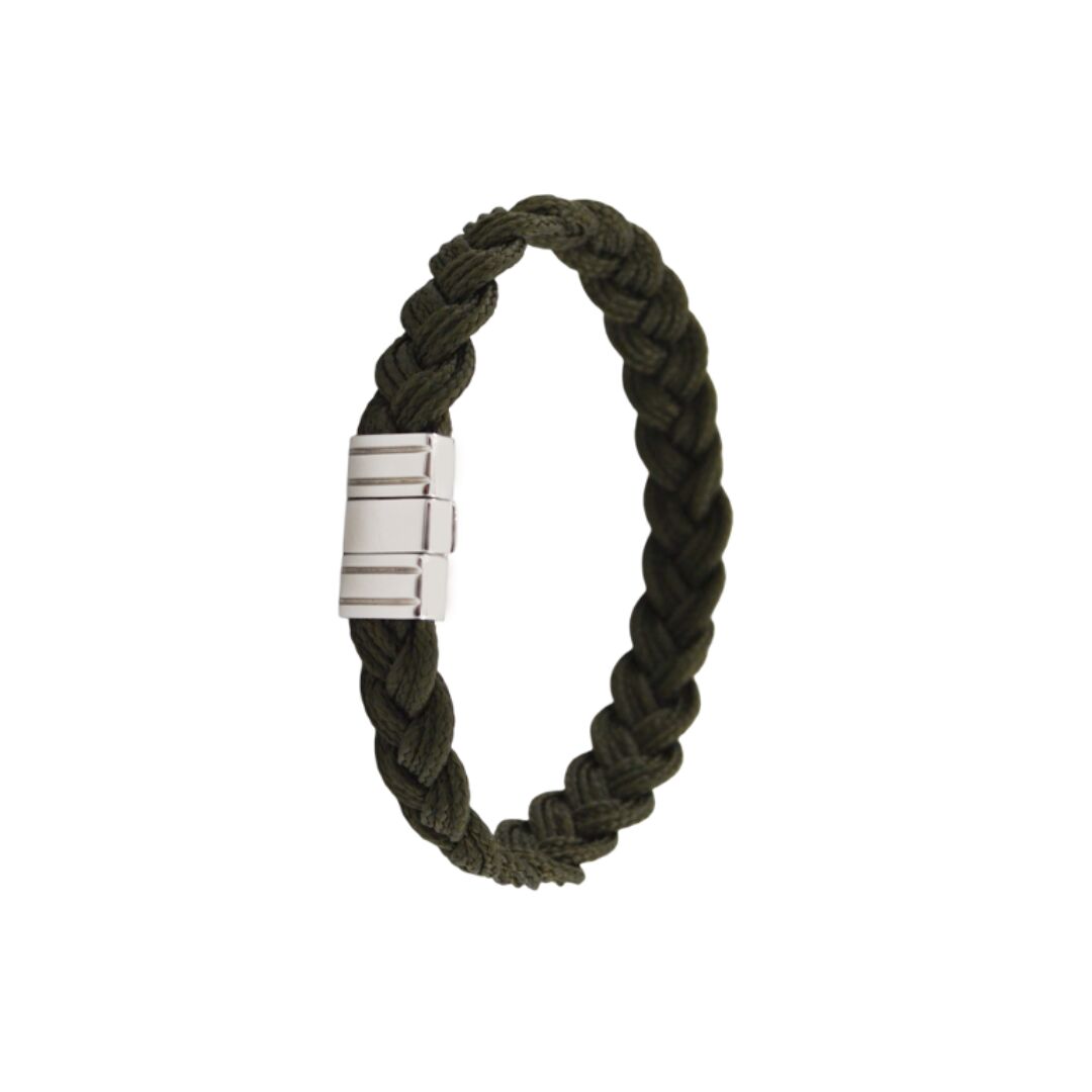 Bracelet en acier tresse cordon marin vert kaki Albanu