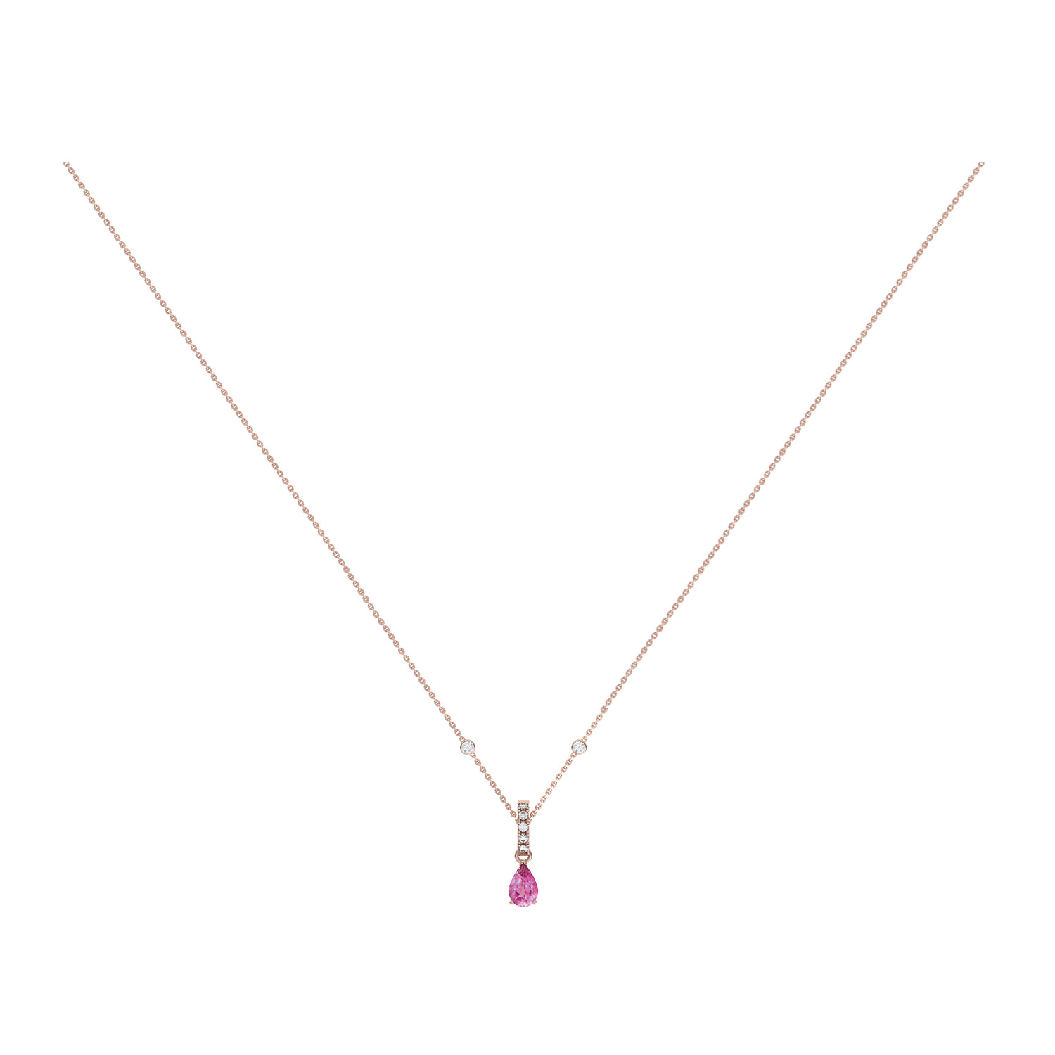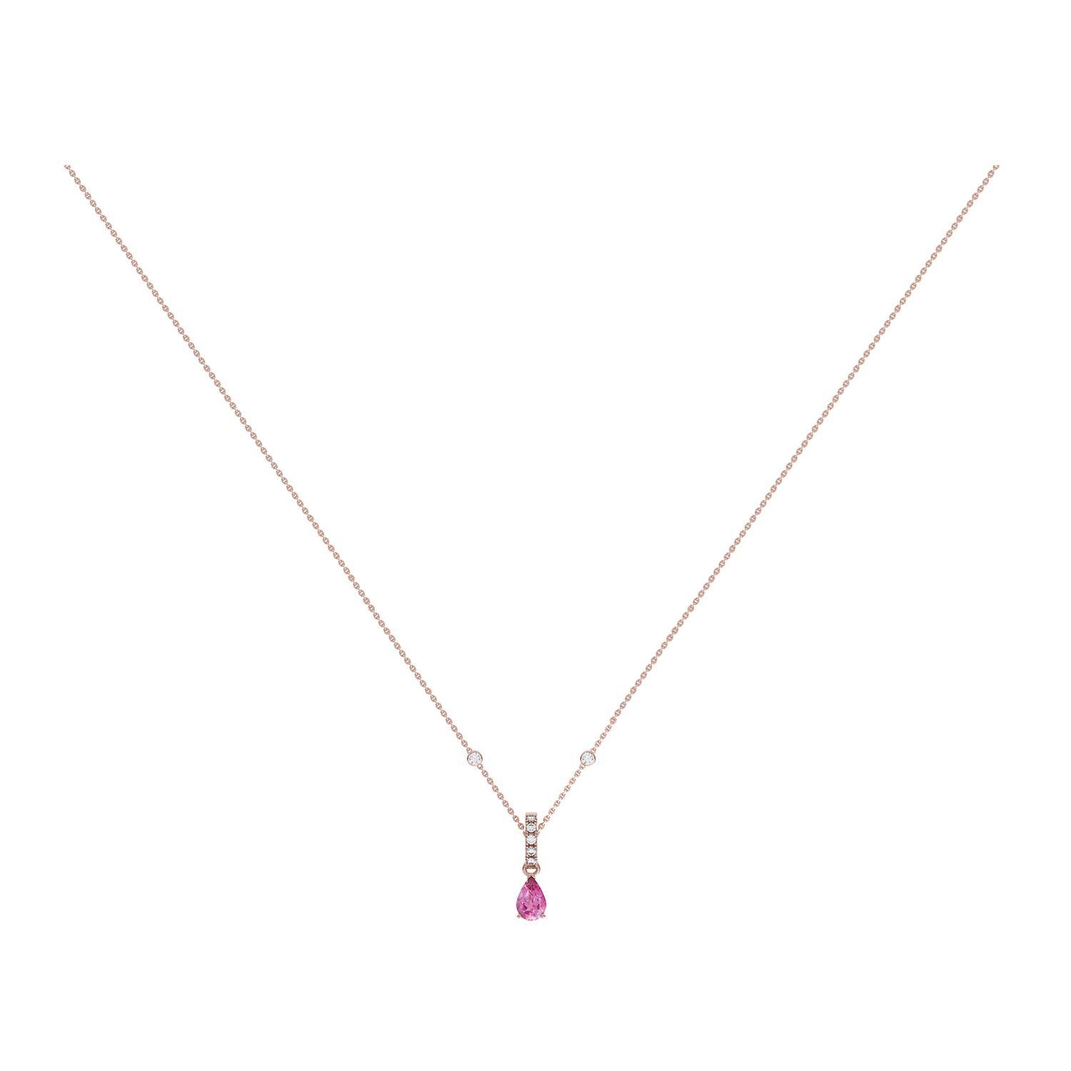 Poids de la pierre Saphir rose taille poire : 0.49 ct - Diamants : 0.10 ct