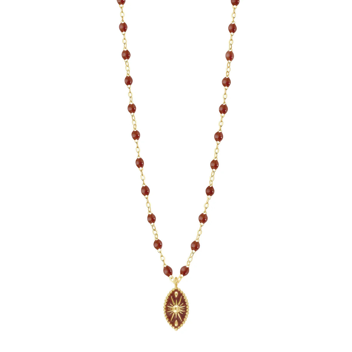 Collier Gigi Clozeau Lucky Sun en or jaune, résine mimosa et diamant, 42cm