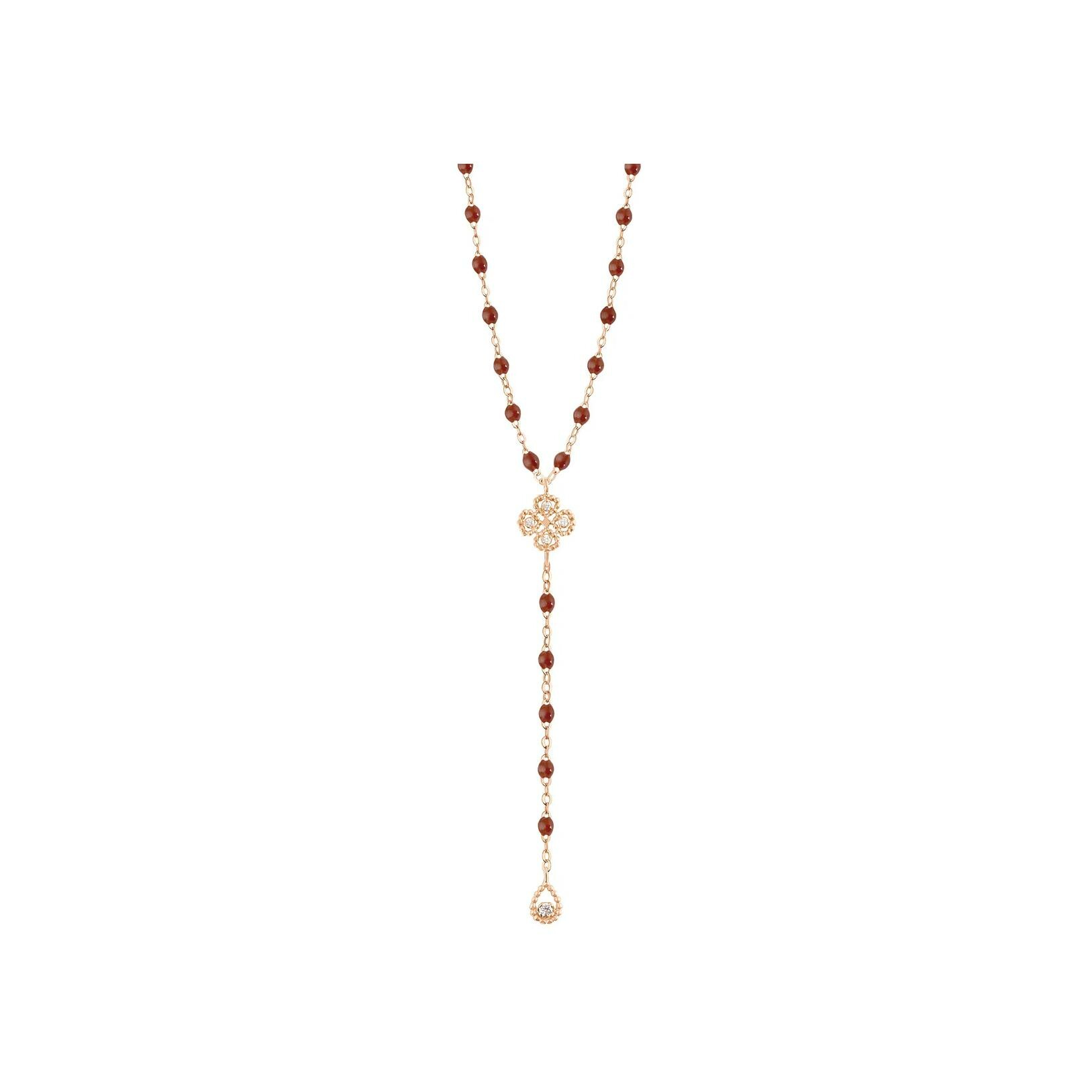 Collier Gigi Clozeau Gigi Suprême en or rose, résine corail et diamants, taille 45cm