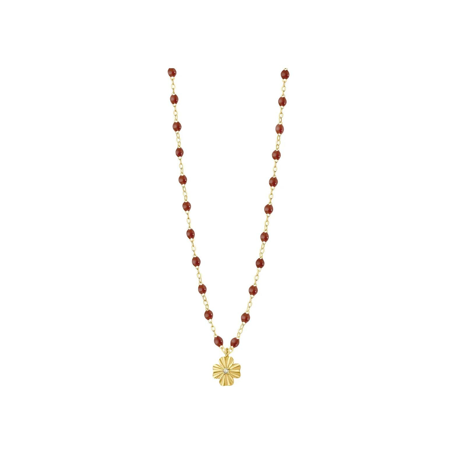 Collier Gigi Clozeau Trèfle Lumière en or jaune, résine moka et diamant, 42cm